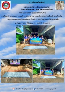 นายไพทูรย์ นรเพชร นายกองค์การบริหารส่วนตำบลตะโก พร้อมด้วยเจ้าพันกงานป้องกันและบรรเทาสาธารณภัยและทีมงานป้องกัน ฯ มอบวัสดุอุปกรณ์งช่วยเหลือผู้ประสบวาตภัย ที่บ้านโคกซาง หมู่ที่ 3 ตำบลตะโก