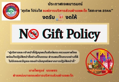 ประกาศเจตนารมณ์ “สุจริต โปร่งใส องค์การบริหารส่วนตำบลตะโก ใสสะอาด 2566” ผู้บริหารและเจ้าหน้าที่รัฐทุกคนพร้อมใจปฏิบัติหน้าที่อย่างเป็นธรรม ดำรงตนเป็นแบบอย่างที่ดี ไม่รับของขวัญ ของกำนัลทุกชนิดจากการปฏิบัติหน้าที่