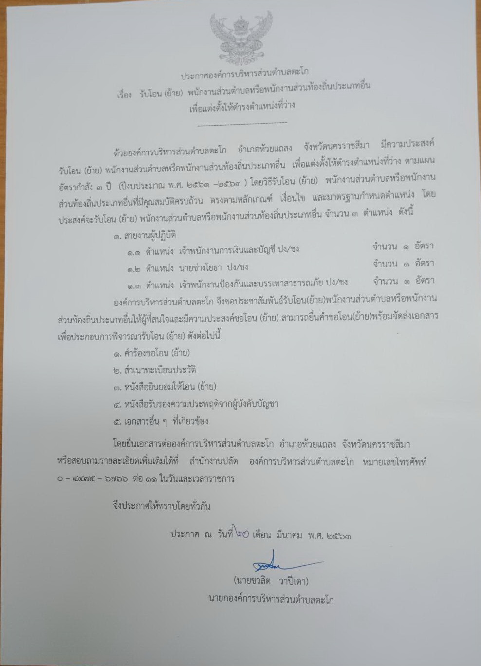 ประชาสัมพันธ์รับโอนย้ายพนักงานส่วนตำบล