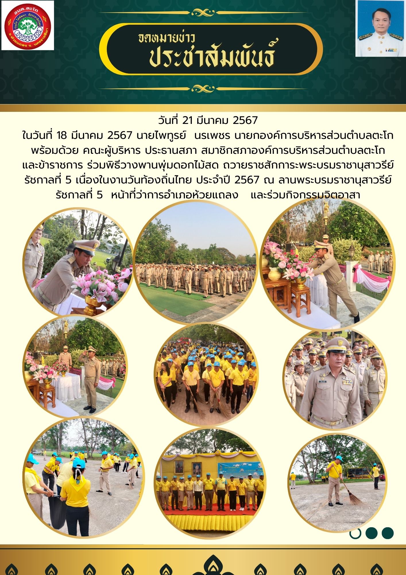 กิจกรรมวางพานพุ่มดอกไม้สด งานวันท้องถิ่นไทย ประจำปี 2567 และกิจกรรมจิตอาสา