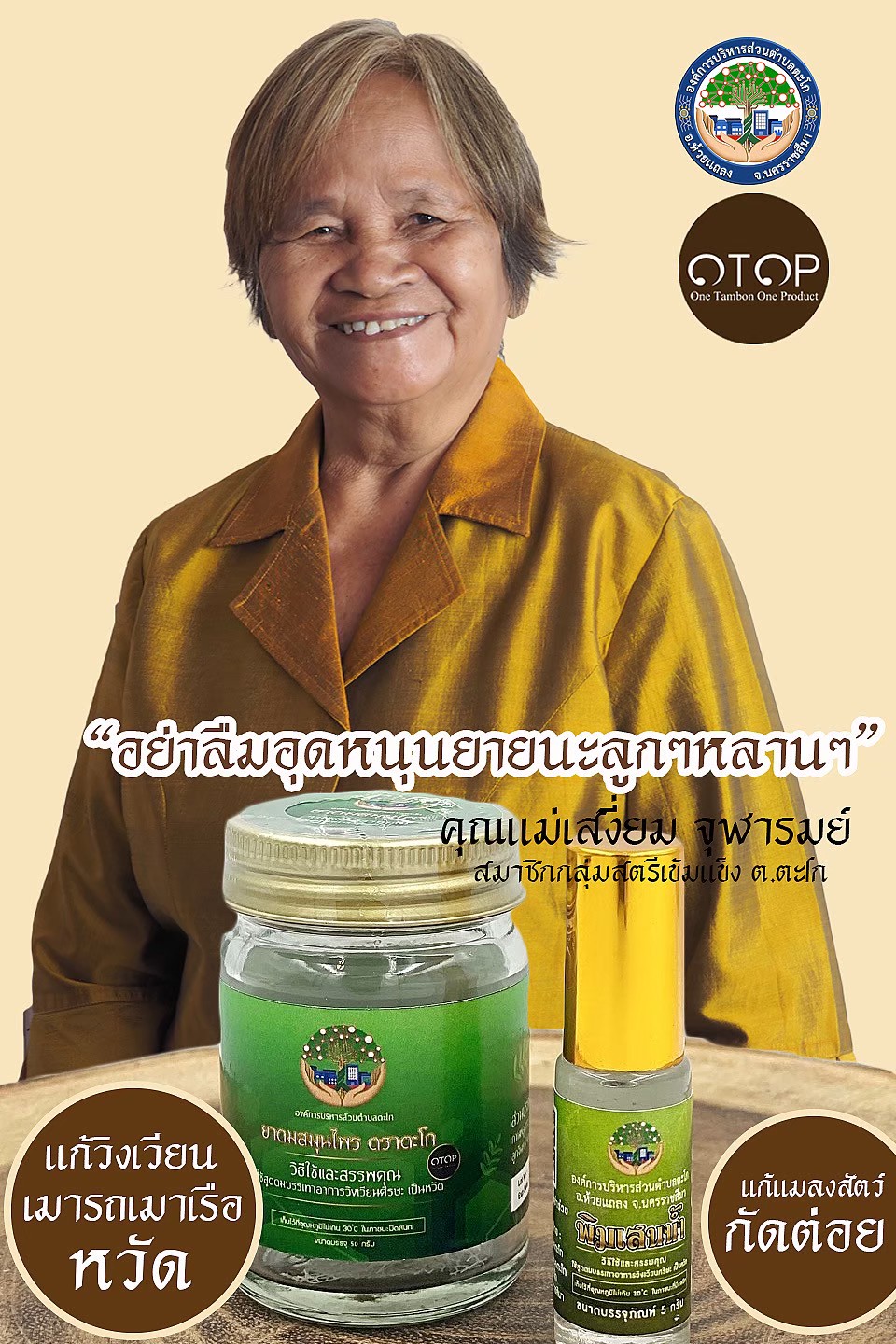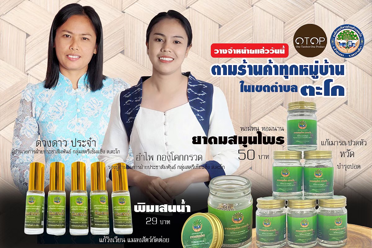 องค์การบริหารส่วนตำบลตะโก จัดจำหน่าย พิมเสนน้ำ และ ยาดมสมุนไพร จากกลุ่มสตรี ผู้สูงอายุ และคนพิการ